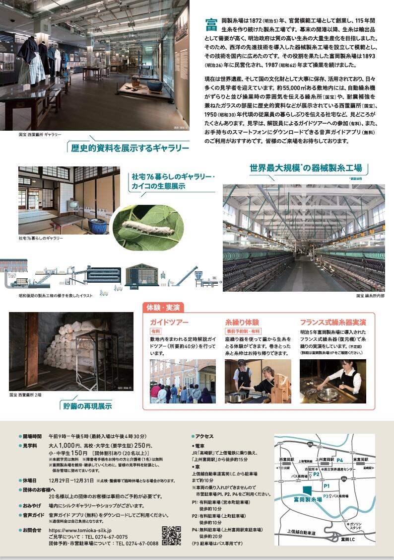 皆様に来ていただきたいという思いから「皆、カミ(みなかみ)ング」プランと銘打ち、全便2泊3日の行程で、2日目には皆様を世界遺産の「富岡製糸場」へご案内いたします。
